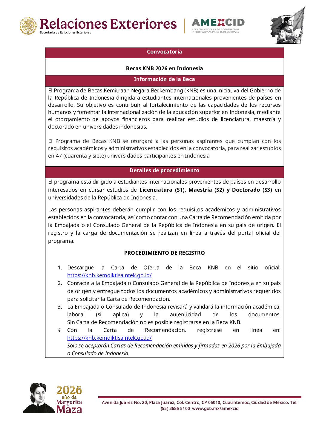Link de registro https://www.gob.mx/amexcid/documentos/programa-de-becas-kemitraan-negara-berkembang-knb-2026-gobierno-de-la-republica-de-indonesia