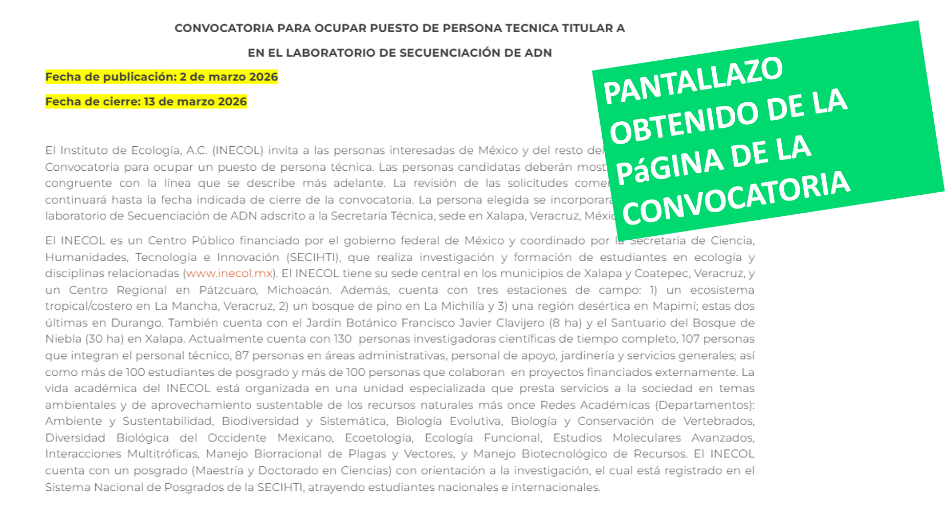 CONVOCATORIA PARA OCUPAR PUESTO DE PERSONA TECNICA TITULAR «A» EN EL LABORATORIO DE SECUENCIACIÓN DE ADN