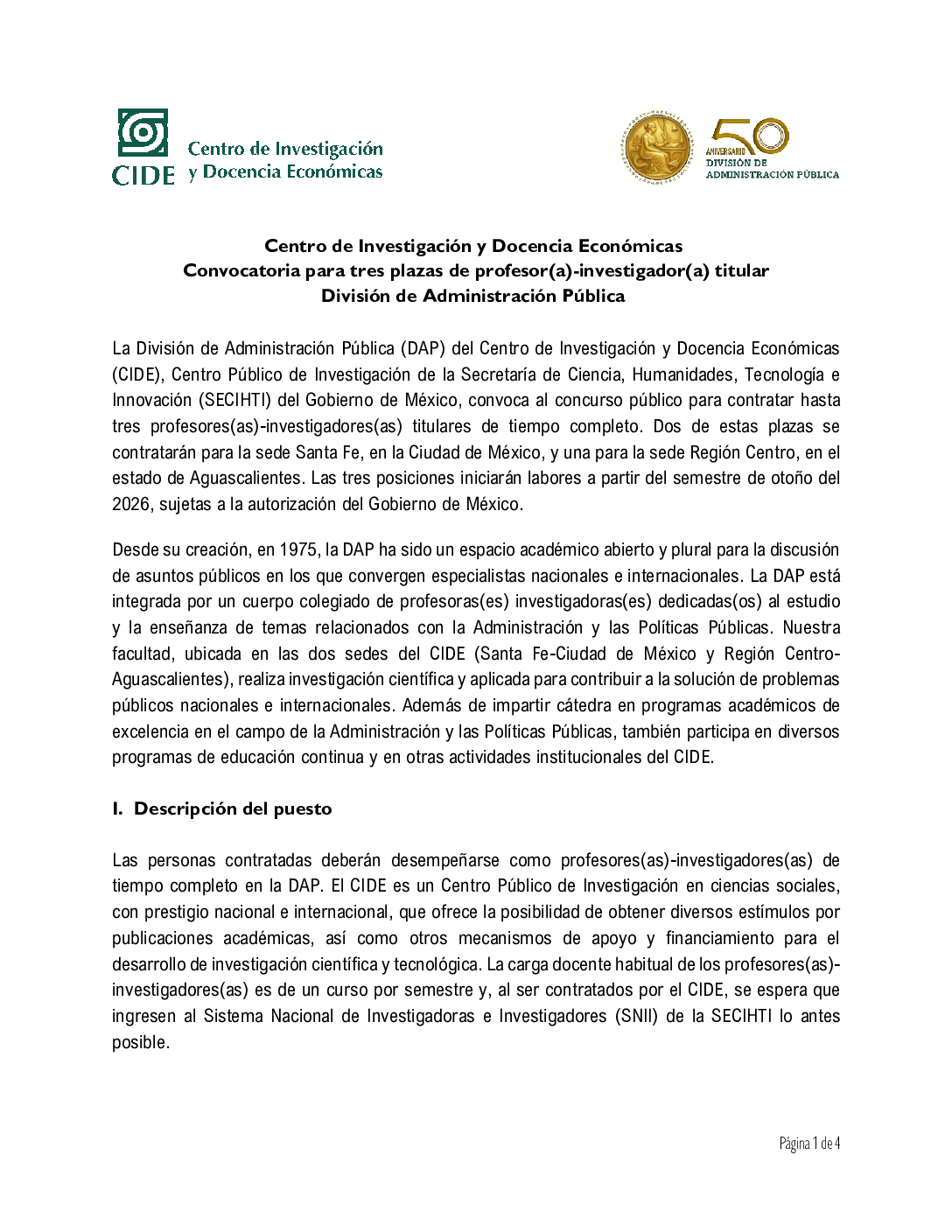 Convocatoria para tres plazas de profesor(a)-investigador(a) titular División de Administración Pública