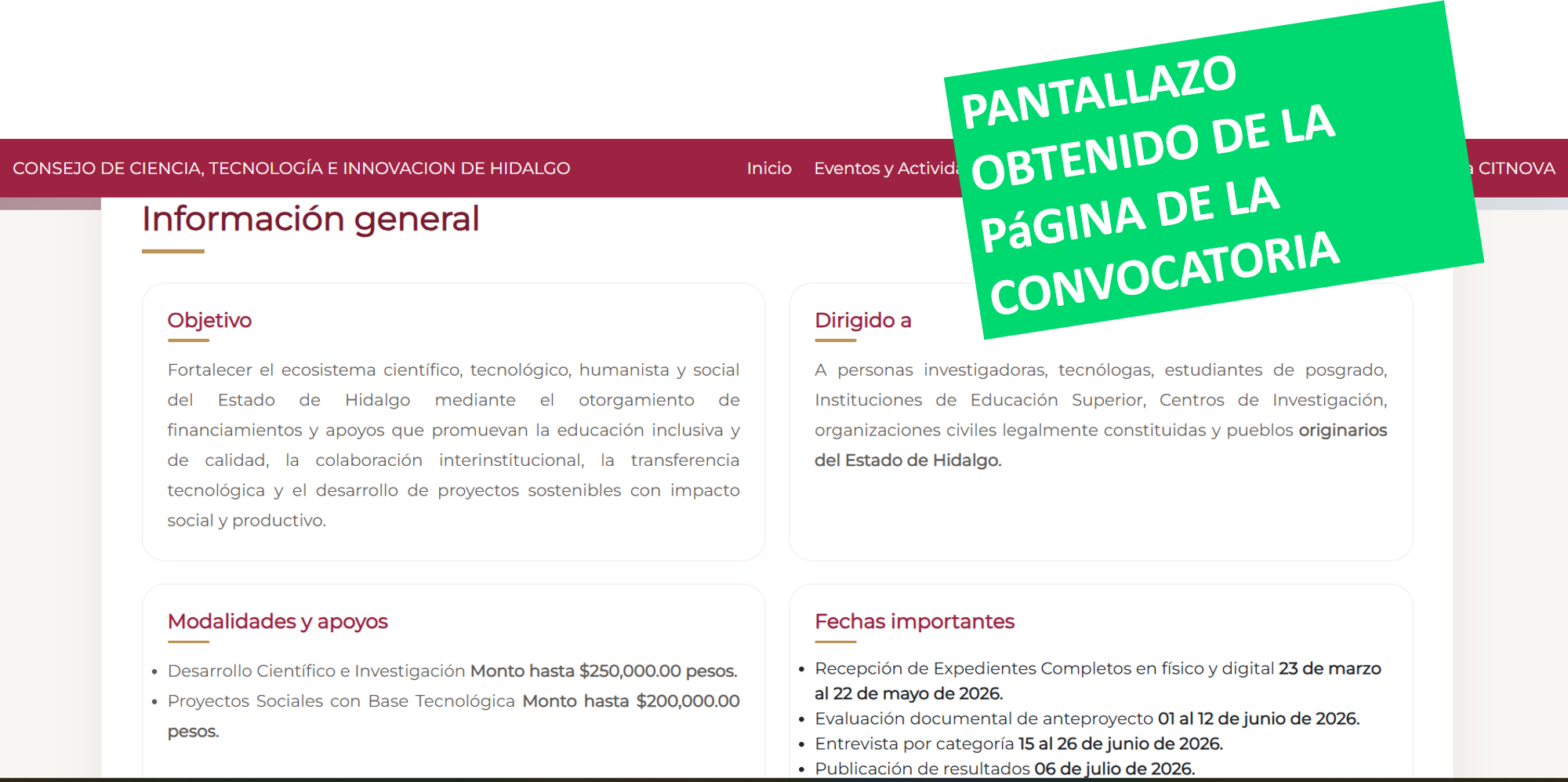 personas investigadoras, tecnólogas, estudiantes de posgrado, Instituciones de Educación Superior, Centros de Investigación, organizaciones civiles legalmente constituidas y pueblos originarios del Estado de Hidalgo.