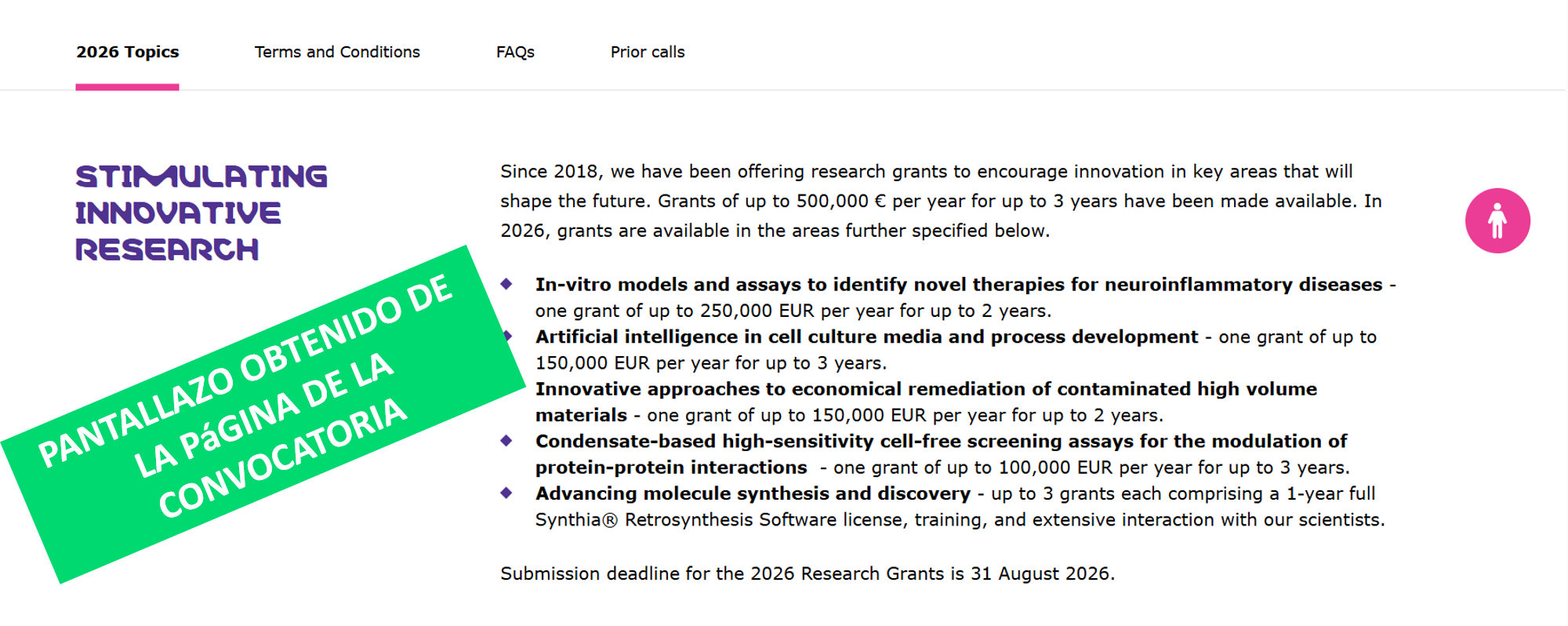 Grants are available in the areas further specified below.- In-vitro models and assays to identify novel therapies for neuroinflammatory diseases