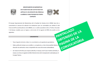 convocatum_k7n0mk2026-02-15 07:15:162026-02-15 07:15:16Posición equivalente a Investigador Asociado C de Tiempo Completo bajo el subprograma de Incorporación de Jóvenes Académicos de Carrera a la UNAM (SIJA), en el área de conocimiento de Química Orgánica.
