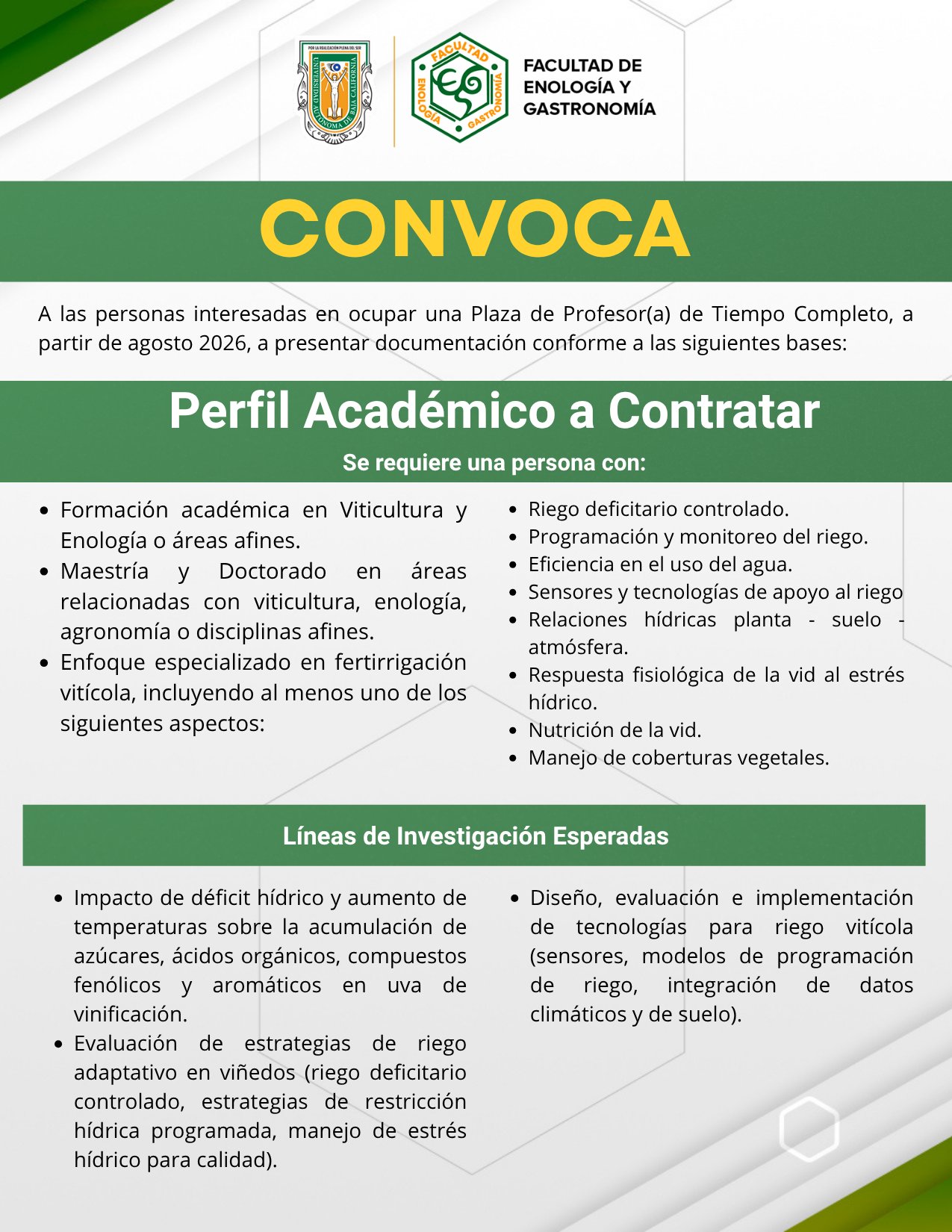 Audiencia Maestría y Doctorado en áreas relacionadas a viticultura, enología, agronomía o disciplinas afines