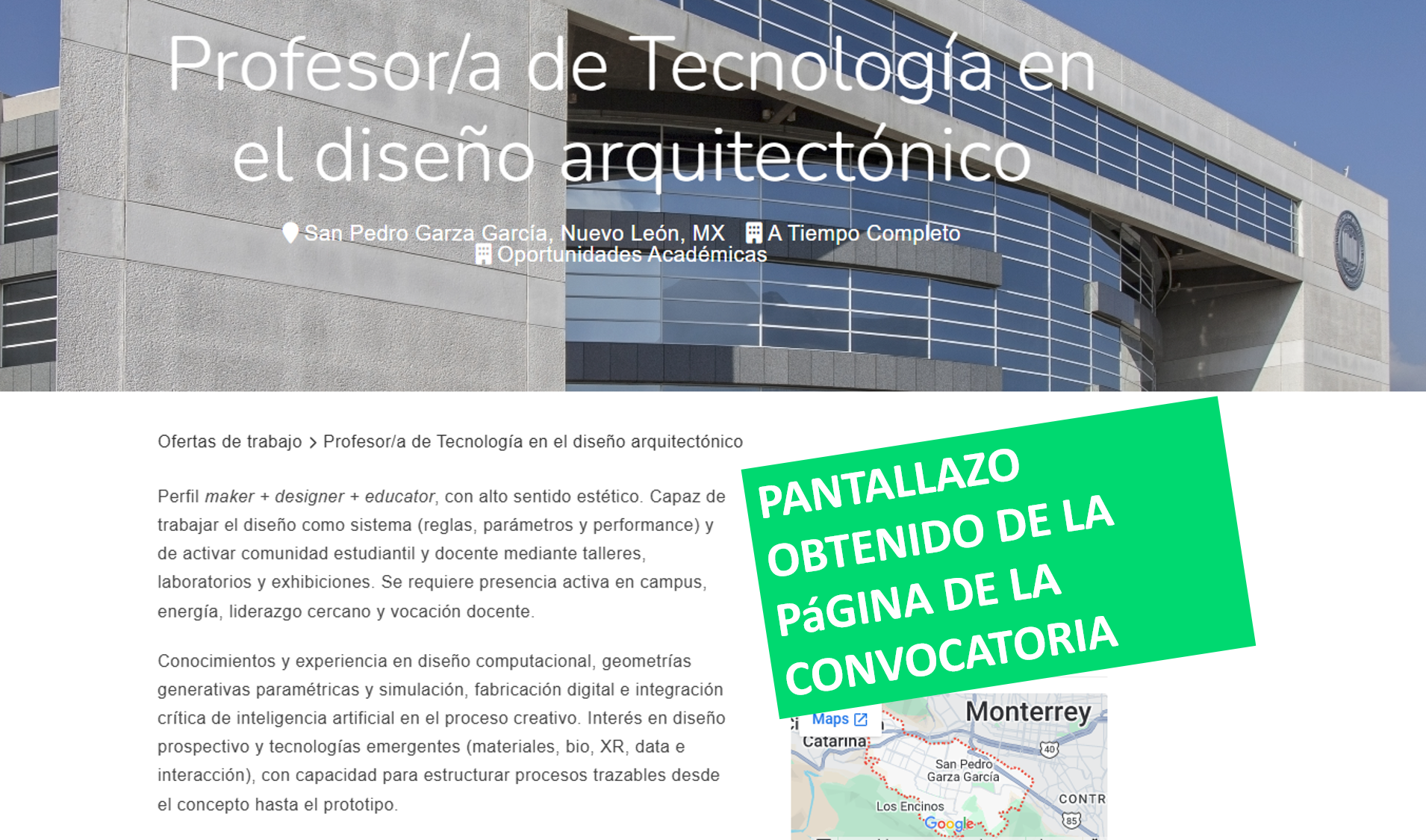 Maestría en: Diseño paramétrico, Diseño arquitectónico avanzado, Fabricación digital, Tecnología del diseño, Tecnologías emergentes, IA aplicada al diseño o áreas afín.