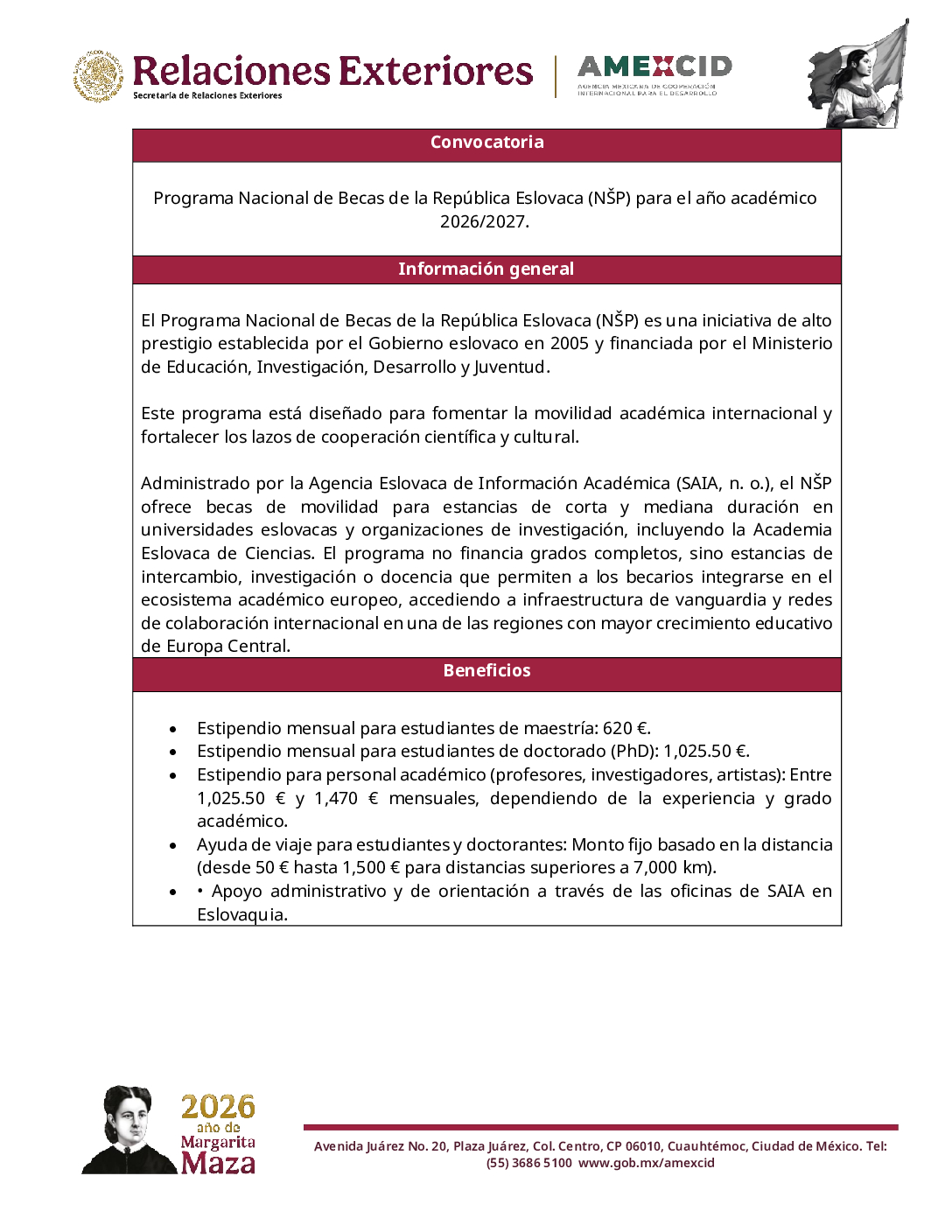 Programa Nacional de Becas de la República Eslovaca para el año académico 2026/2027